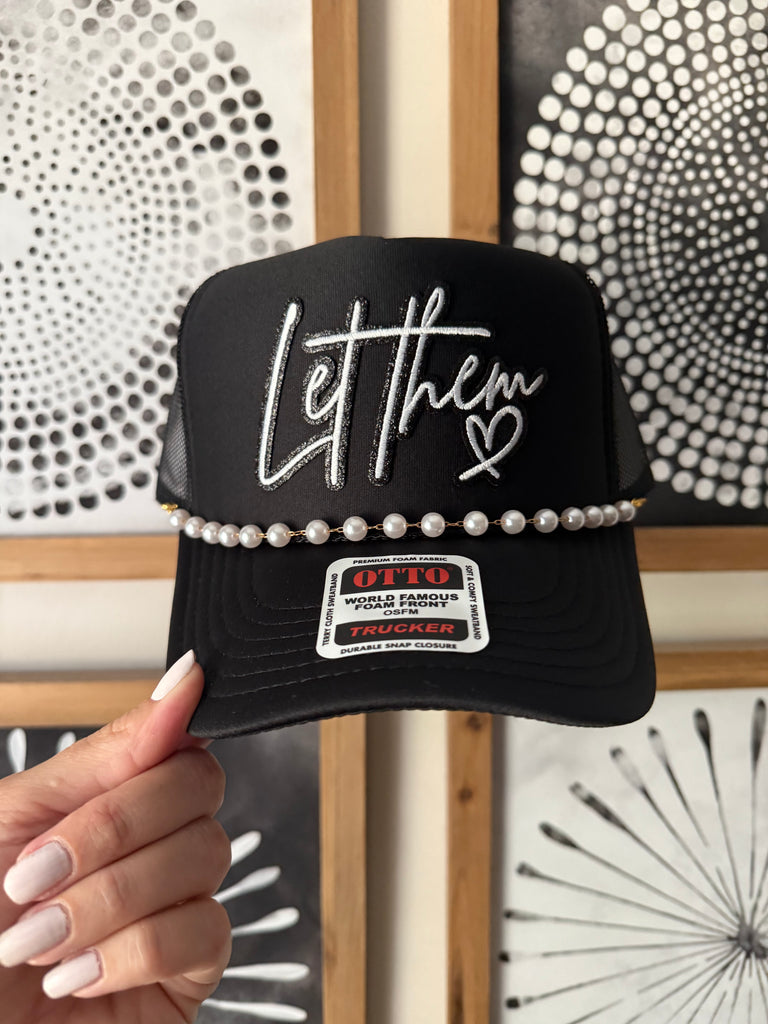 "Sparkle up your trucker life with Glitter Let Them Trucker! Let your personality shine with this glittery trucker hat. Perfect for standing out on the road or at a party. Let them envy your unique style!"