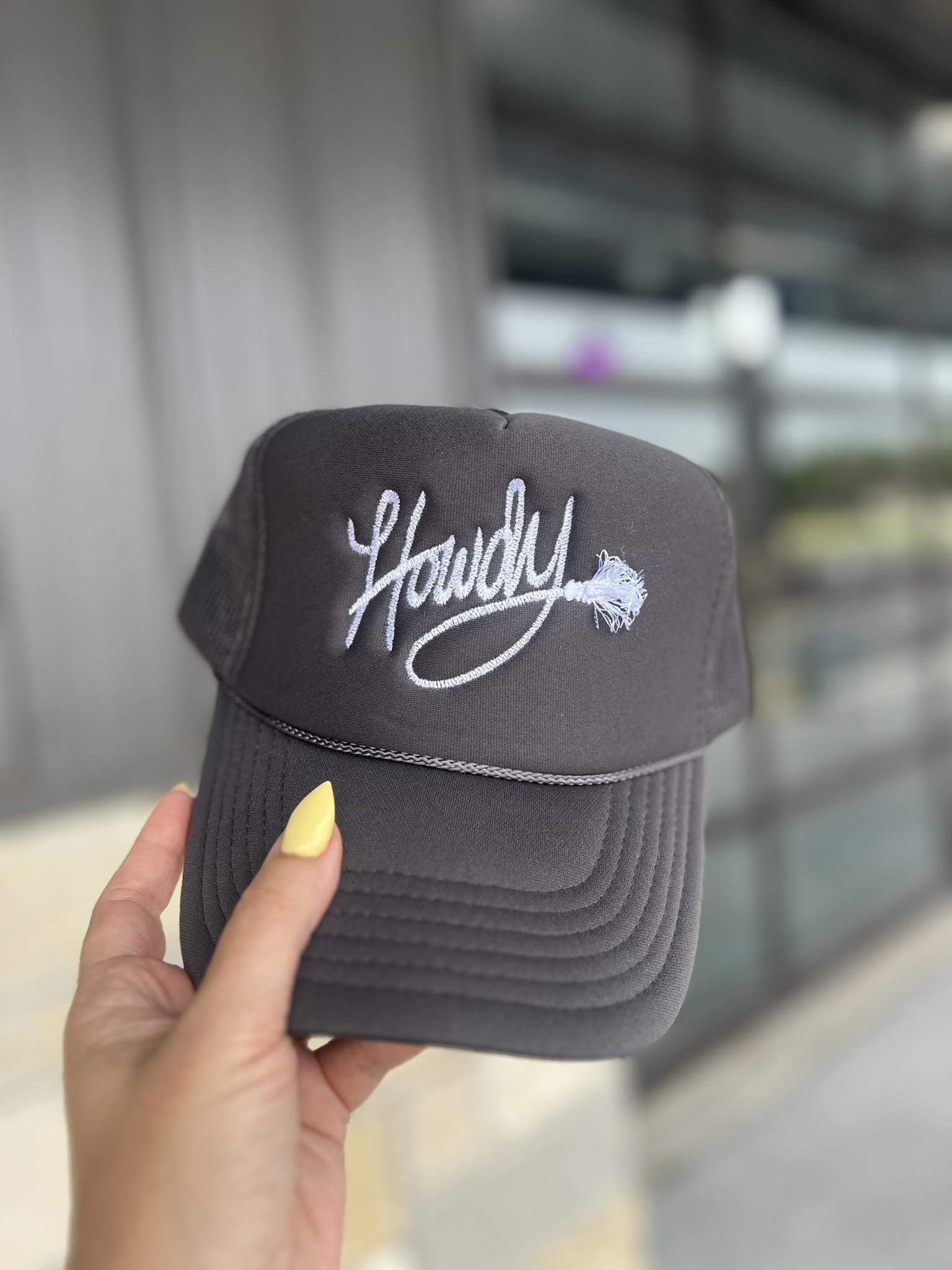 Add a splash of fun to your outfit with this Howdy with Fringe Rope Trucker hat. Featuring playful embroidered lettering and a charming fringe rope detail, it’s perfect for those who love a little country flair with a modern twist. Comfortable and stylish, this hat is ready to hit the road or the weekend concert with you!