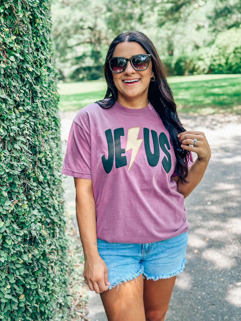 Jesus Curved Gold Lightning Bolt Puff Tee