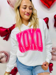 XOXO Varsity 25 V-Neck Valentine's Puff Sweatshirt